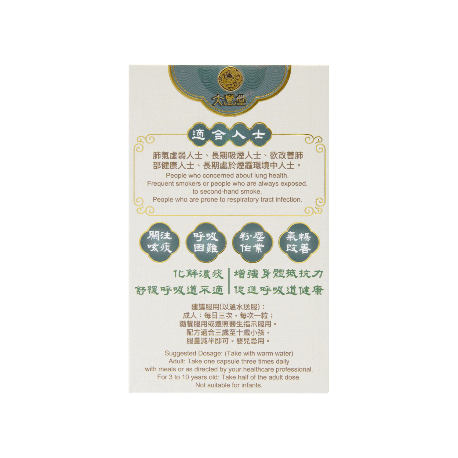 適合以下人士服用:肺氣虛弱人士、長期吸煙人士、欲改善肺部健康人士、長期處於煙霾環境中人士。